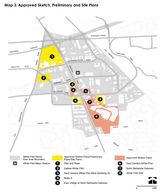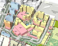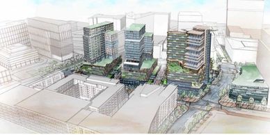 5.22-million square foot development will include 2.87 million square feet of 55 percent residential uses - 2,500 residential units - and 45 percent non residential with two 250 foot tall office towers, six 200 foot tall buildings, eight 100 to 140 tall buildings, retail and public uses.