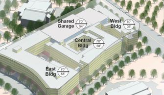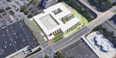 Proposed Building B will also be an active-adult, age-restricted residential building for ages 62+ with a maximum height of 150 feet, approximately 233 age-restricted units, and both underground and above-grade structured parking.